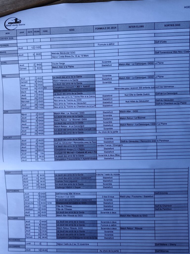 - Jeudi 2 avril 2026 : Daube de Serge : rdv 9h pour un scramble amical suivi vers 14h de la daube… Places limitées inscrivez-vous rapidement ! Participation : 10€